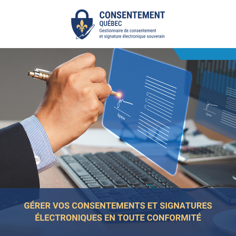 Consentement.Québec est la seule application québécoise qui réunit en une même plateforme la gestion des consentements et la signature électronique souveraine.